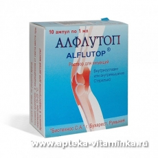Алфлутоп предотвращает разрушение макромолекулярных структур нормальных тканей, стимулирует процессы восстановления в интерстициальной ткани и ткани суставного хряща, что объясняет его анальгезирующее действие.