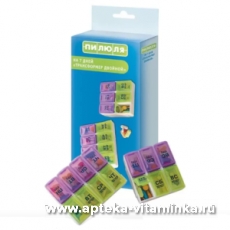 Содержит 7 отделений, которые соответствуют дням недели: ПН, ВТ, СР, ЧТ, ПТ, СБ и ВС. Для людей с ослабленным зрением нанесены символы Брайля.