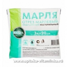 Широко применяется во всех лечебно-профилактических учреждениях для изготовления операционно-перевязочных средств. Марлевые отрезы должны присутствовать в каждой домашней аптечке для оказания первой помощи при ранении, с целью остановки кровотечения, предохранения раны от загрязнения и создания покоя поврежденной поверхности, а также для использования в различных бытовых целях.
