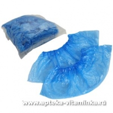 Бахилы медицинские одноразовые п/э, толщиной 20 мкм, цвет синий, одинарная резинка, пропаянная по всей длине. Бахилы упакованы по 5 пар в пакет БОПП с клеевым клапан.